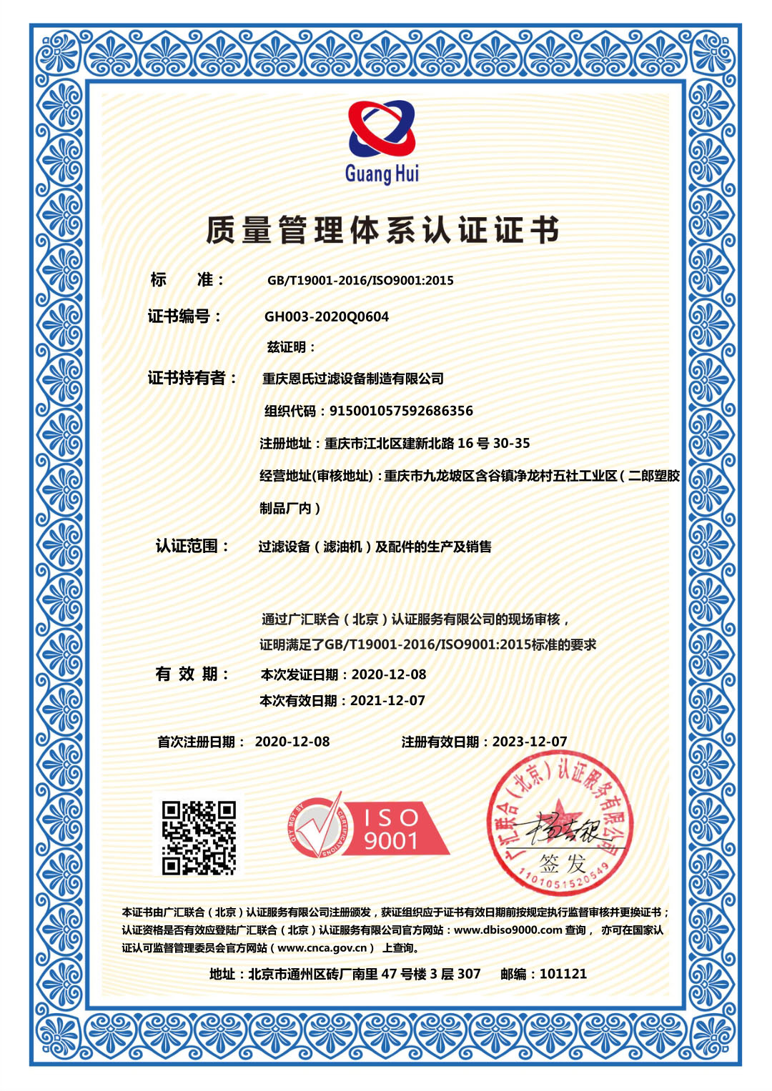 重慶恩氏過濾設(shè)備制造有限公司,是一家開發(fā)、研制、生產(chǎn)廣義潤滑油過濾設(shè)備的高新技術(shù)企業(yè)。